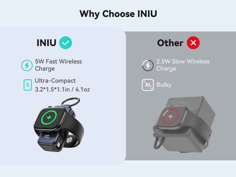 - What You Get: INIU 5,000mAh power bank for iwatch*1, user manual*1, and INIU industry-leading 3-year care and lifetime technical support.